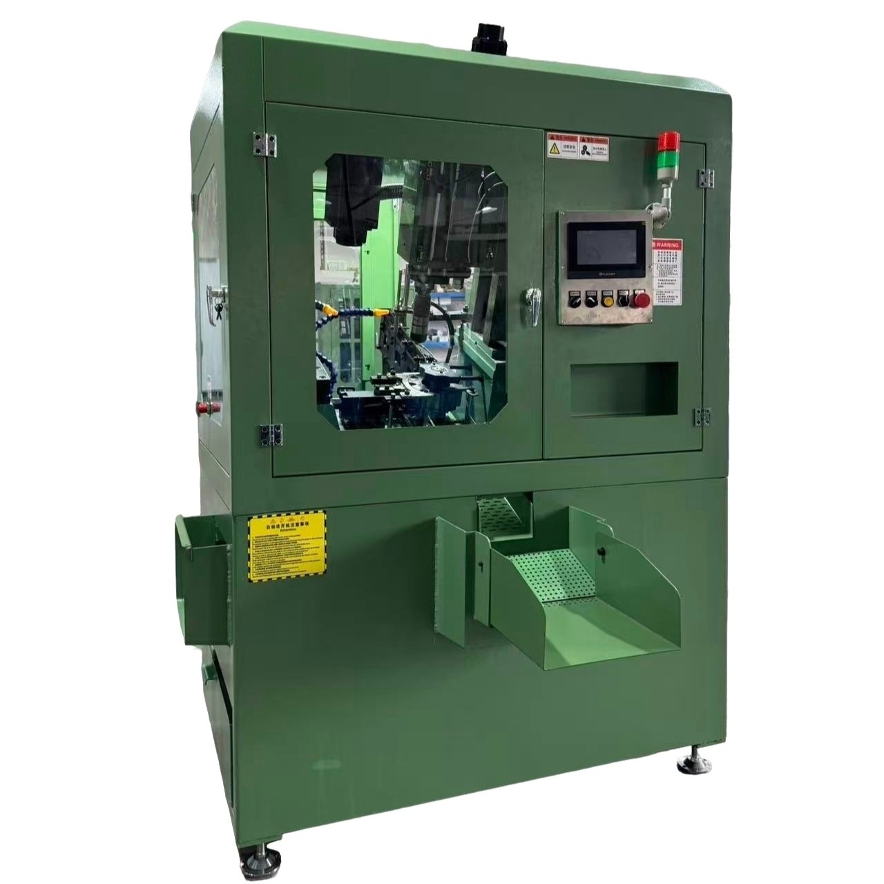 2.机器全自动化,采用振动盘送料,自动装夹自动攻丝,自动攻下料,一个人可以看多台这样的设备。